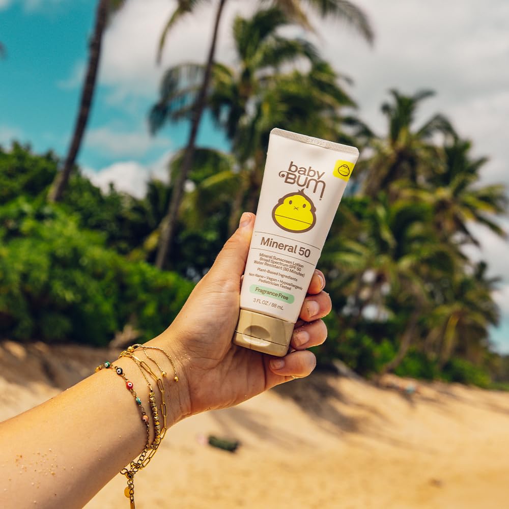 BABY BUM SPF 50 SUNSCREEN LOTION. Our convenient, travel sized sunscreen is gentle mineral-active based protection for your little ones. The lotion applies and absorbs easily to face and body with a non-oily feel for UVA/UVB protection. Fit this mini size in your carry-on for your next sunny vacation.