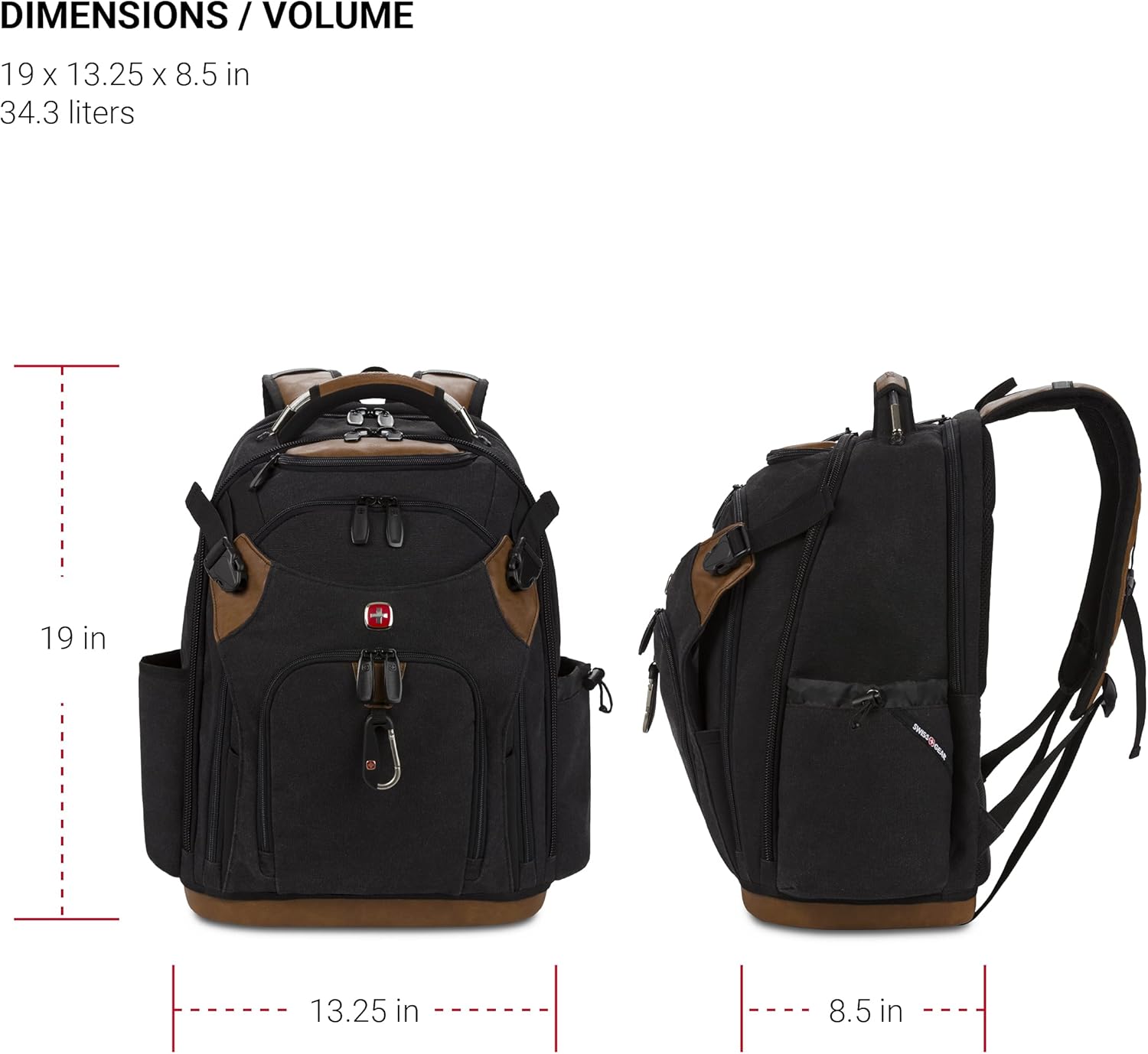 SwissGear Tool Bag Backpack, Fits Up to 17-Inch Laptop, Work Pack PRO, Black/Brown Canvas