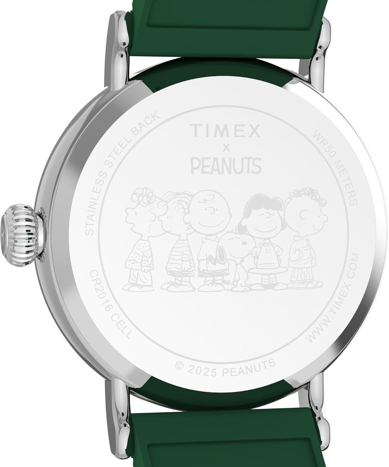 Our most refined everyday watch meets our favorite Peanuts® beagle. We updated our versatile Timex Standard—pairing the silver-tone 40mm case and green rubber strap with luminant hands, our INDIGLO® backlight, and a clean white dial showcasing Snoopy, Woodstock, and their feathered friends hitting the golf course in style.