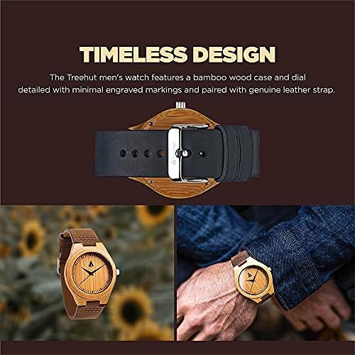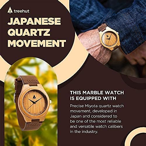 Introducing Treehut’s Nature-Inspired Wooden Watch, a meticulously crafted timepiece blending authentic Wood, evoking the serene allure of nature in every detail. This Classic wooden watch boasts high-quality Japanese quartz movement, ensuring precision timekeeping with a minimalist and elegant design suitable for the modern man’s lifestyle. The adjustable stainless steel clasp with leather straps adds durability and ease of use, ideal for outdoor enthusiasts. Crafted from genuine wood, the stylish strap enhances comfort and style with its unique texture and grain patterns, making it a standout accessory for any occasion. Treehut’s commitment to individuality, while the beautifully crafted gift box elevates its presentation as the perfect gift choice for any celebration. Beyond its aesthetic appeal, this watch embodies durability and sustainability, crafted from real wood and stainless steel, reflecting Treehut’s dedication to creating timeless products with minimal environmental impact. Experience the perfect blend of style, functionality, and sustainability with Treehut’s Nature-Inspired Wooden Watch