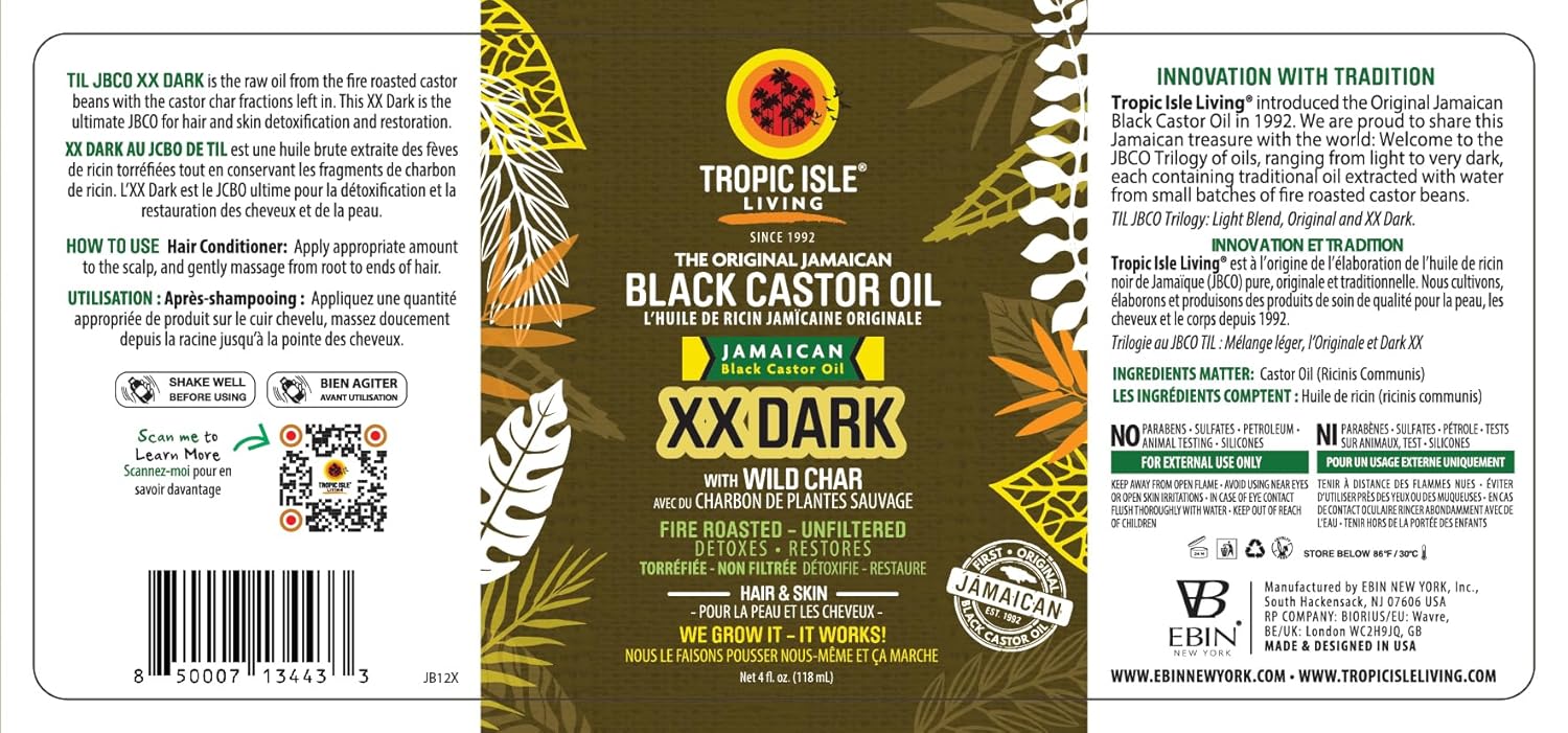𝗘𝗡𝗛𝗔𝗡𝗖𝗘𝗗 𝗫𝗫 𝗗𝗔𝗥𝗞 𝗙𝗢𝗥𝗠𝗨𝗟𝗔 – Crafted through an extended roasting process that gives the XX Dark version of Jamaican Black Castor Oil its rich color and distinctive aroma. The higher ash content contributes to a thicker texture ideal for deep moisture and scalp conditioning.