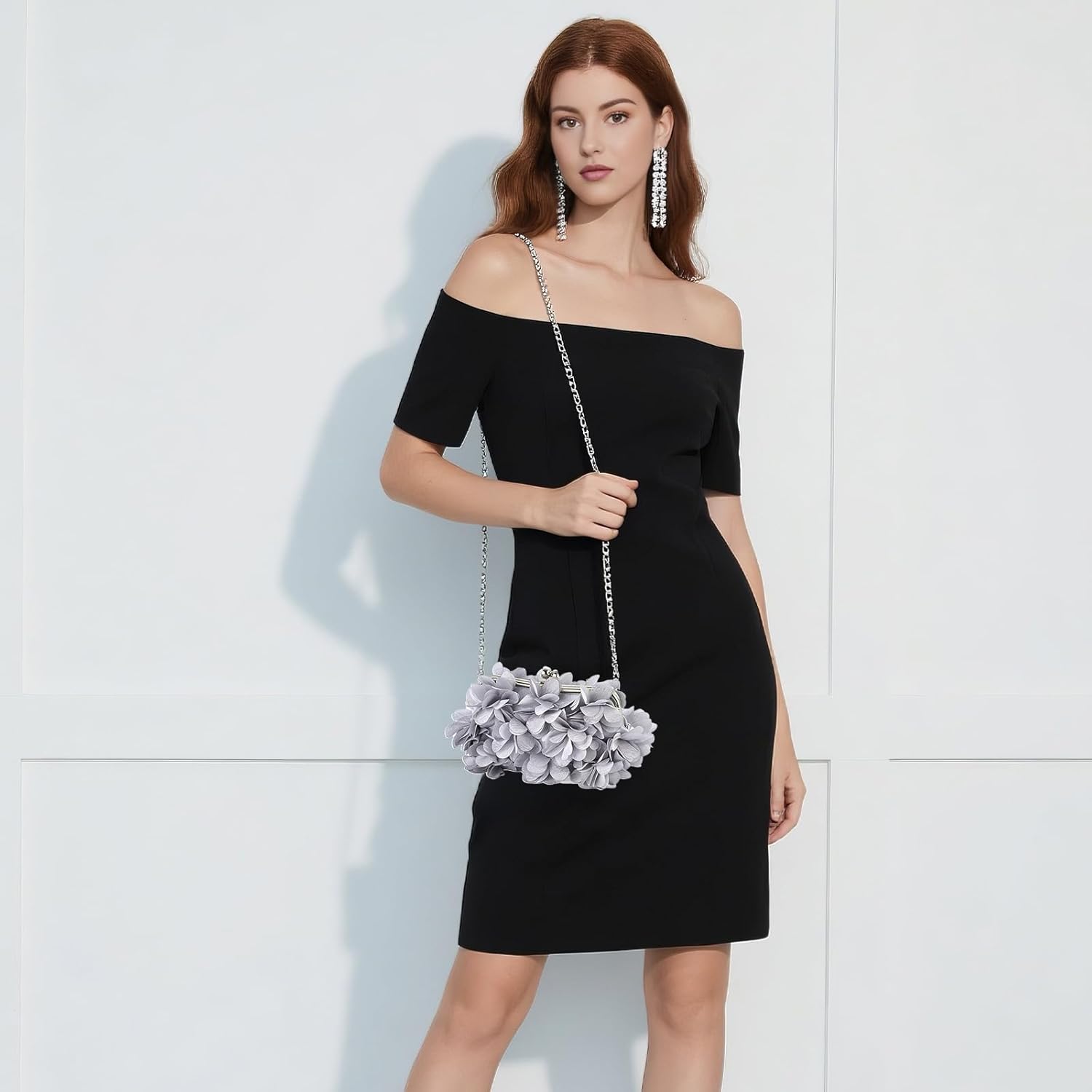 Women Elegant Evening Purse, Small Floral Clutch Bag with Detachable Chain for Wedding, Party, Prom