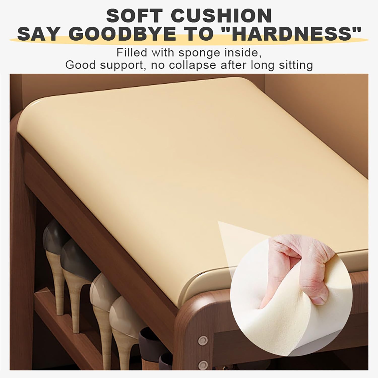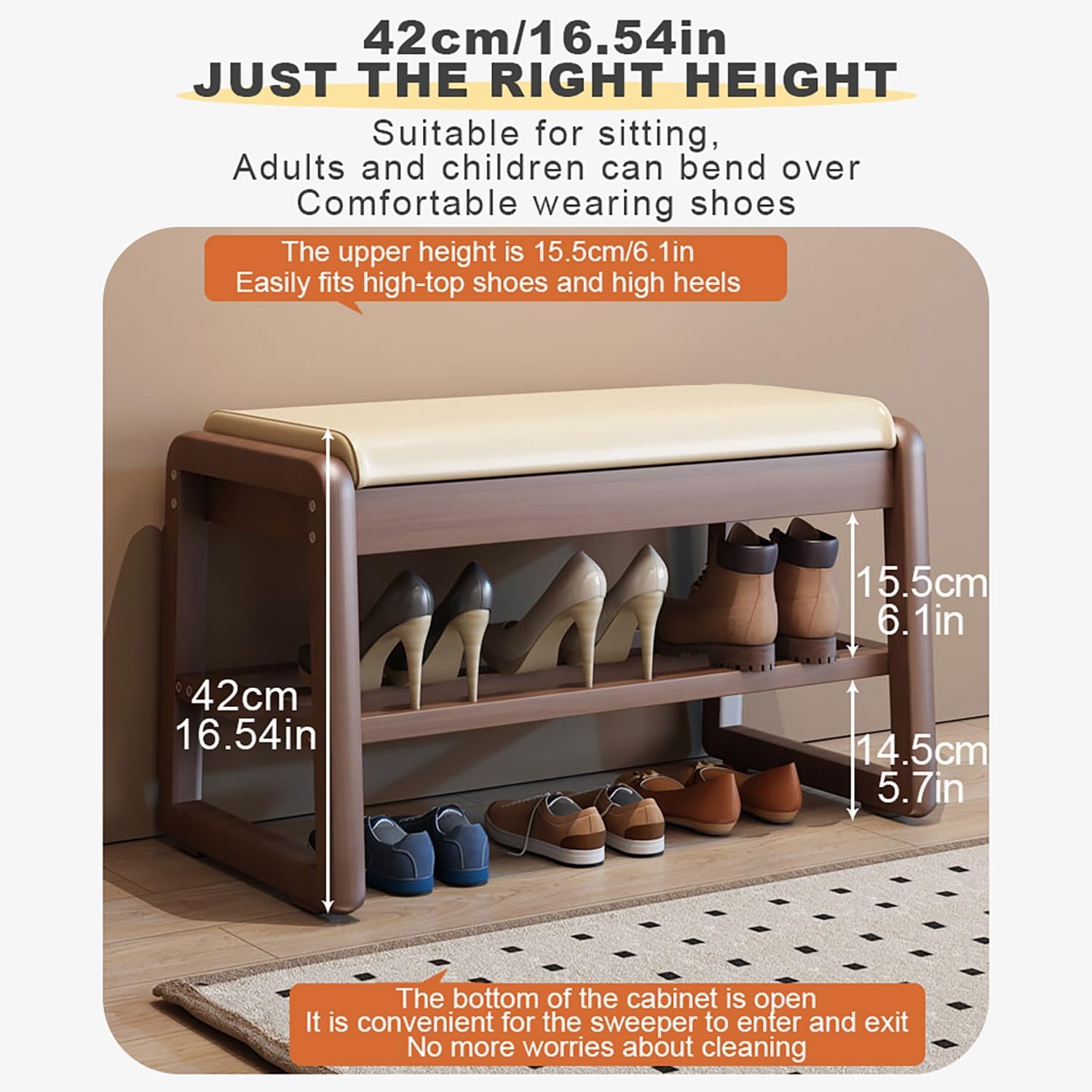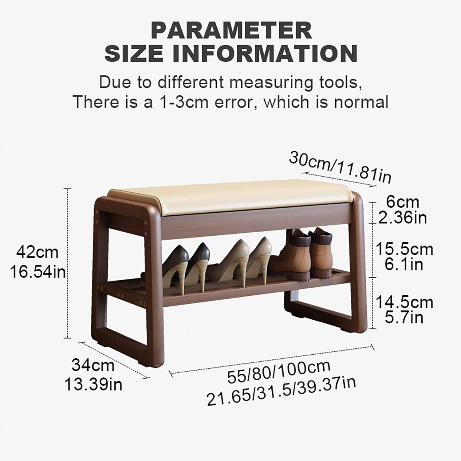 Stylish and Functional Shoe Storage Solution: This Wooden Shoe Bench offers a chic and practical addition to your Entryway or Living Room. Featuring a Built-In Shoe Rack that holds 6-8 Pairs of Shoes, it helps keep your space organized. The Cushioned Top provides a comfortable seating area for putting on or taking off Footwear, making it ideal for Compact Spaces.